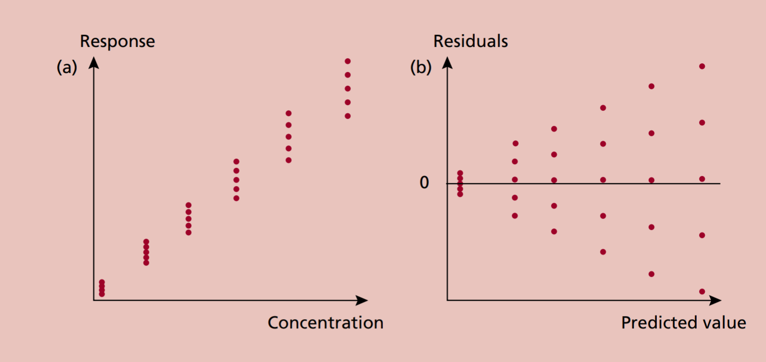 - \(y_i\) observed peak area ratio for a given concentration \(x_i\).